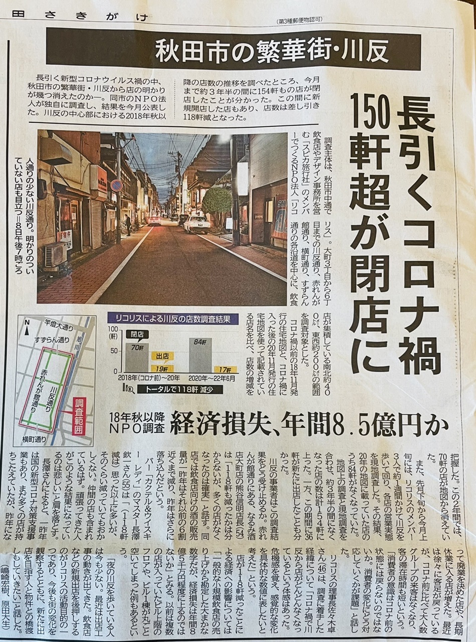 コロナ禍の影響により秋田市の歓楽街・川反の店が減少してしまっていることは